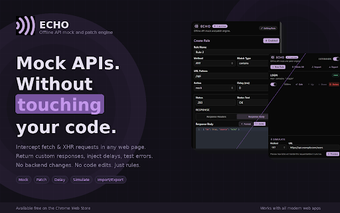 Echo - API Mock & Patch Engine is een krachtige tool voor ontwikkelaars die zich richt op frontend ontwikkeling en testen. Dit gratis Chrome-add-on stelt gebruikers in staat om netwerkverzoeken volledig te beheren, waardoor ze API's kunnen simuleren en fouten kunnen nabootsen zonder de applicatiecode te wijzigen. Met functies zoals verzoekinterceptie en het opstellen van aangepaste JSON-antwoorden, maakt Echo het mogelijk om snel en efficiënt te werken, zelfs wanneer backend-diensten niet beschikbaar zijn.